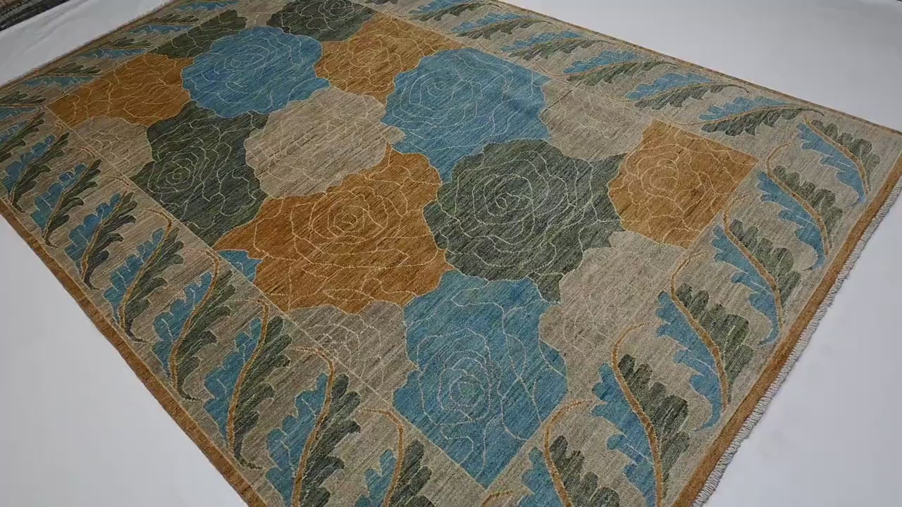 This rug is more than a floor covering — it is a handcrafted heirloom, carrying the artistry and soul of Afghan craftsmanship. Its gentle floral design and serene blue-yellow palette breathe tranquility and elegance into any interior, turning your space into a haven of warmth and timeless beauty.