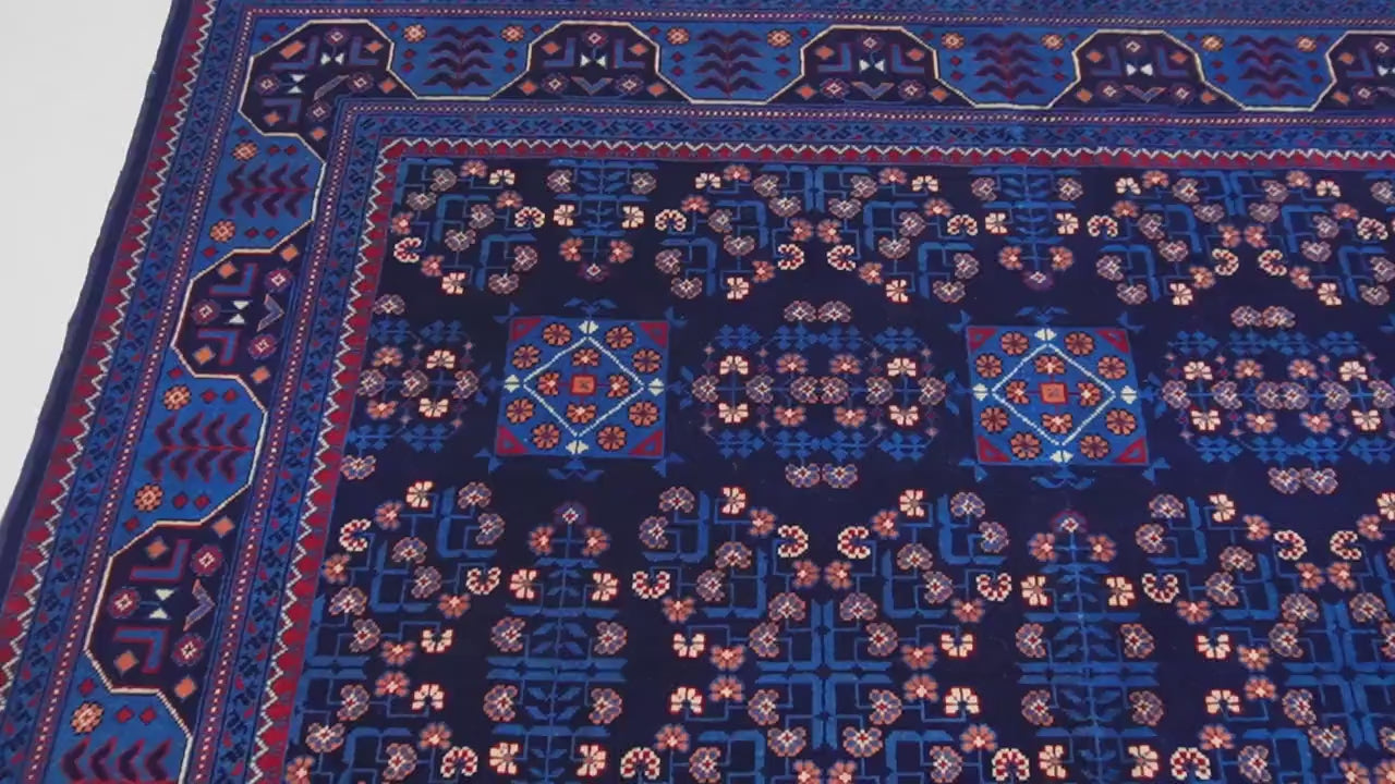 6.7x10 ft Navy Bukhara Rug – Hand-Knotted Afghan Wool | Fine Turkmen Tribal Weave