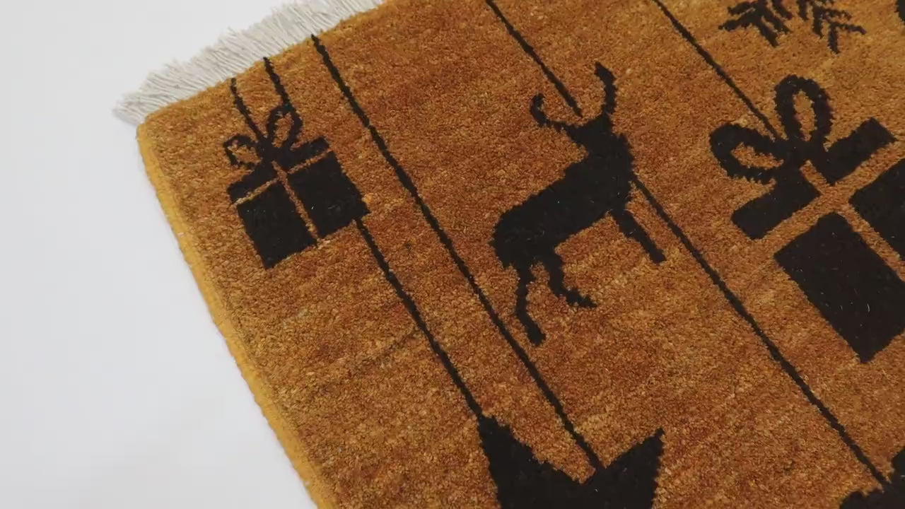 Bring warmth and craftsmanship to your doorstep with this hand-knotted Afghan “Merry Christmas” Doormat. Woven entirely by hand by Afghan Turkmen women artisans, this festive piece combines tradition and cheer in a single, timeless design. Each rug takes 15–20 days to complete, created knot by knot with love, patience, and precision.