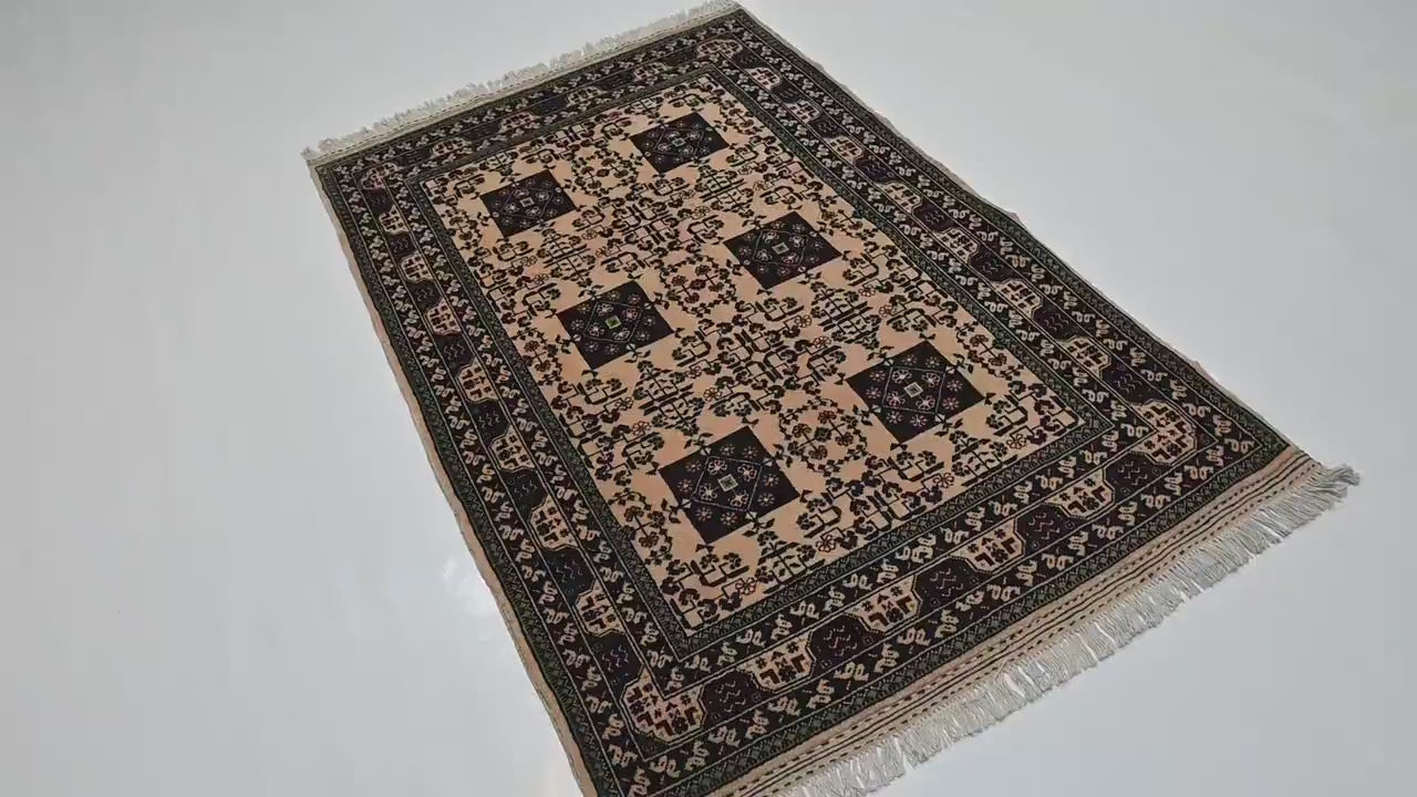 3x5 ft Beige Bukhara Rug – Hand-Knotted Afghan Wool | Fine Turkmen Craftsmanship