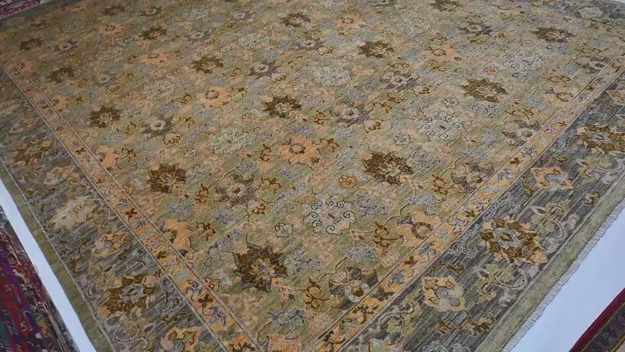 10x14 ft Fern Green Bijar Rug – Hand-Knotted Afghan Wool | Traditional Oushak Elegance