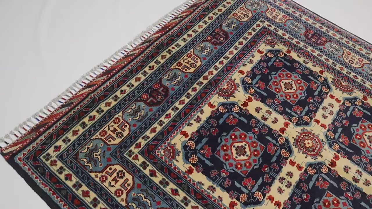4'11" × 6'9" ft Afghan Turquoise Bukhara Rug – Fine Handmade Wool | Geometric Turkmen Design