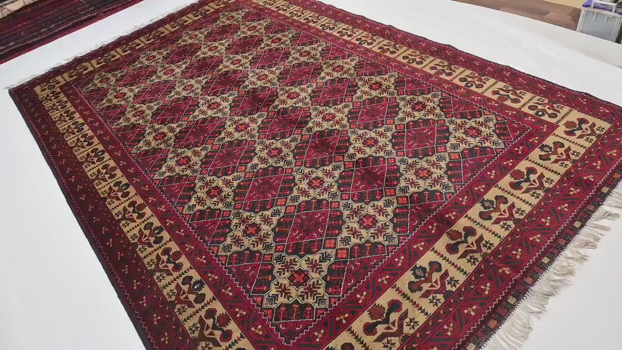 Authentic Heritage: A true vintage Afghan Yousufi, hand-knotted with centuries-old techniques.